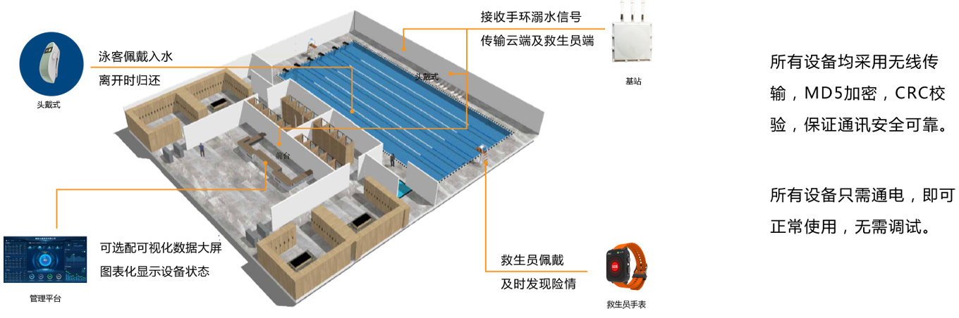 頭戴設(shè)備內(nèi)置水浸傳感器、陀螺儀、微型處理器和無(wú)線通訊系統(tǒng);